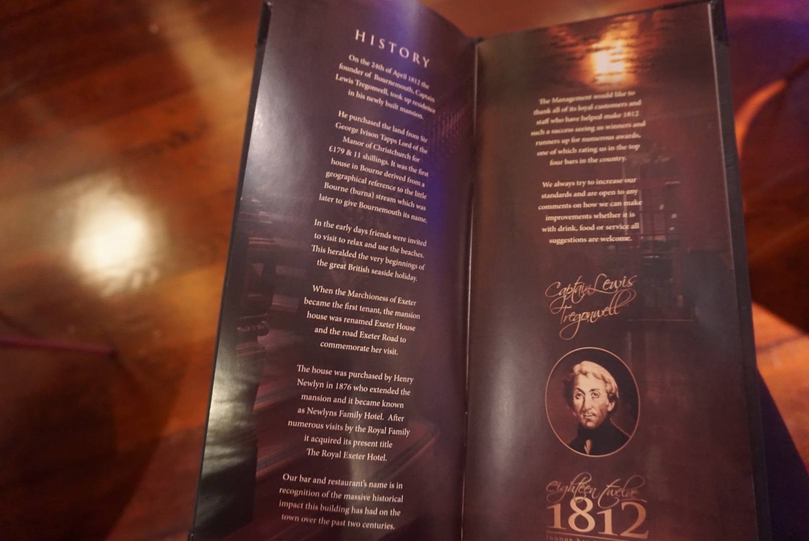 I had a good look through the cocktails menu and not only does it tell you how much their cocktails, beers and ciders cost but it also gives you a little insight into the history of Bournemouth itself, as you can see in the second image above this paragraph Bournemouth was first discovered in 1812 hence the name of the venue is called 1812 and it even gives you the date of when Bournemouth was first founded which was 24th April 1812